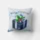 Ajoutez un peu de joie de vacances à votre maison avec cet Oreiller cadeau de Noël bleu festif. Le design coussin présente un cadeau de Noël bleu vif orné de baies sèches et de flocons de neige tombant contre un élégant parchemin et arrière - plan feuille. Autres cadeaux et objets de vacances disponibles avec ce design aussi.