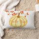 L'oreiller à jetons est montré en feuilles d'automne et imprimé citrouille avec une couleur arrière - plan blanche. Customisez ce coussin ou achetez tel quel.