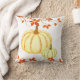 L'oreiller à jetons est montré en feuilles d'automne et imprimé citrouille avec une couleur arrière - plan blanche. Customisez ce coussin ou achetez tel quel.