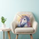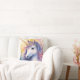 Jetez un oreiller avec une licorne majestueuse avec une corne dorée entourée de fleurs vibrantes. Sa crinière coule dans des tons violets, roses et bleus, se mélangeant harmonieusement dans un décor doux et rêveur.
