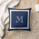 Oreiller à lancer de monogramme classique bleu mar