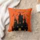 Cet oreiller de lancer est montré dans un design d'impression Halloween château hanté. Customisez ce coussin ou achetez tel quel.