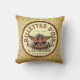 Jetez un oreiller avec des étiquettes français vintages contre un design beige vintage.