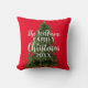 Ajoutez votre nom de famille et votre année à ce coussin de Noël rouge festif. C'est à double face et au contraire, il y a un autre sapin de Noël. Merry Tree-mas !