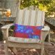ciel rouge sang et feuilles de bois de chien bleu cobalt avec un soupçon d'Aqua sur cet oreiller coloré à lancer
