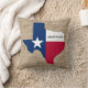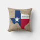 Personnalisez le nom de votre famille Texas sur ce coussin de logo de l'état. Le burlap est un motif, pas le matériau. Disponible en différentes tailles.