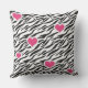Funky coussin zèbre motif orné de coeurs roses.