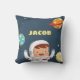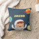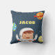 Un garçon astronaute mignon flottant dans l'espace parmi les étoiles et les planètes. Cet oreiller jeté personnalisé est un excellent élément décoratif pour le petit garçon qui aime l'aventure spatiale !