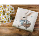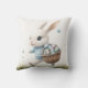 Ajoutez une touche de magie printanière à une nurserie ou une salle de jeux avec cet oreiller décoratif charmant. Le devant présente une illustration de style peint à la main d'un lapin blanc duveteux portant un pull à carreaux bleus et portant un panier d'œufs colorés. Le verso affiche un sentiment "Joyeuses Pâques" clair, ce qui en fait un accent réversible parfait pour la décoration saisonnière de la maison.