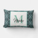 Oreiller décoratif à plaid diamant sarcelle avec monogramme