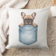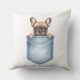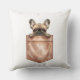 Ajoutez une touche d'amour pour les chiots à votre canapé ou lit. Cet oreiller présente un design trompe-l'œil d'une poche de tissu avec un chiot Bouledogue Français à l'intérieur. Isolée sur un fond blanc propre, elle s'accorde avec n'importe quelle décoration de ferme moderne ou décoration cosy.