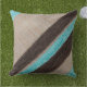 Tissu d'ameublement Trois Un Aqua et Marron Rayé Coussin de jet avec coins Aqua Accentués