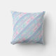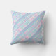 Un joli et féminin Coussin ou Oreiller, avec un motif de rayures diagonales roses, turquoise et blanches de chaise longue et de roses roses : partie de la collection 'Jours d'été' de Posh & Painterly.