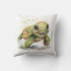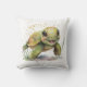Un oreiller très mignon avec une illustration d'une tortue souriante et joyeuse.
