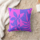 Cet oreiller jeté à fleurs rétro hawaïen présente un motif de pochoir floral et de feuilles dans un rose fuchsia chaud et un washi japonais violet-bleu texturé, et est disponible en deux tailles carrées, ainsi qu'un oreiller bûche. Ajoutez une touche de flamme tropicale à n'importe quel espace. Aloha !