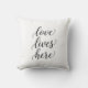 Oreiller jeté avec écriture « L'amour vit ici »