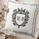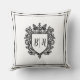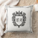 Oreiller avec initiales de blason de couple. Cet oreiller noir sur fond blanc est élégant et sophistiqué.