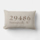Ajoutez une touche de personnalisation à votre espace extérieur avec notre oreiller lombaire personnalisé avec code postal. Avec le numéro de code postal de votre choix et le nom de la zone à laquelle il appartient ainsi que l'État, cet oreiller est un excellent moyen de montrer votre fierté pour votre ville natale. La surface imprimée de l'oreiller est réalisée dans un style de ferme et présente une texture de toile de jute imprimée et une couleur beige naturel qui complétera tout décor extérieur. Parfait pour ajouter une touche personnelle à votre porche avant, patio ou zone de sièges extérieure.