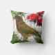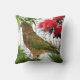 Un coussin avec un oiseau natif de Nouvelle-Zélande, le Kea, dessus, ainsi que des plantes et fleurs indigènes.