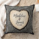 Oreiller d'anniversaire de mariage boisé pour couples en herringbone et carreaux. Design rustique mignon pour un cadeau romantique.