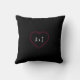 Oreiller de lancer de photo personnalisable pour la Saint-Valentin avec un bouquet de roses rouges. Oreiller pouf carré avec cadre photo de rose en forme de cœur a un fond noir sur l'avant et l'arrière, avec vos initiales au dos de l'oreiller. La photo peut être recadrée et positionnée pour s'adapter à la forme du cœur. Les calques peuvent devoir être désactivés temporairement pour déplacer votre photo.