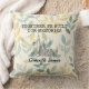 Un oreiller pour couple serein présentant un motif de feuilles doux et une illustration élégante de la ligne d'horizon. Personnalisez avec les noms et la date pour créer un souvenir significatif. Parfait pour les anniversaires, les mariages ou pour ajouter une touche personnelle à la décoration moderne de la maison.