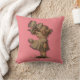 Petite fille avec arc en marron sur un coussin rose 100% polyester lancer. "16 x 16".