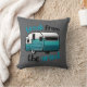 Un oreiller avec un camping-car sarcelle rétro, accompagné de la phrase "Échappez à la routine" centrée autour de l'image. Le design évoque un sentiment d'aventure et de liberté, suggérant une évasion paisible de la routine quotidienne.