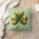 Oreiller décoratif présenté avec une impression de trèfle irlandais, parfait pour votre décoration de la Saint-Patrick.