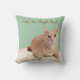 Lancer l'oreiller, 16" x 16", coussin vert avec chat orange. Les chats sont aussi des gens ! Personnalisez avec votre propre phrase de chat ou le nom du chat.