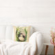 Oreiller avec un petit oiseau avec une coloration blanche et noire, comme un pinson ou une mésange, entouré de feuilles, de fleurs et d'herbe. Idéal pour Pâques ou simplement pour le printemps !