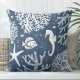 Ajoutez un de ces magnifiques coraux bleu et blanc et des hippocampes jettent des oreillers dans votre salon et créez un look luxueux et se sentent avec un beau style côtier. Ces oreillers à lancer d'hippocampe ont été créés par le designer Totally Coast, Jillee K. Ils sont disponibles dans différents styles (Polyester, Zipperless, Coton et Outdoor) et 3 tailles différentes (16" x 16", 20" x 20", 13" x 21"). Vous pouvez sélectionner le style et la taille que vous voulez à droite de l'image coussin sous les étiquettes "Fabric" et "Size". © Totally Coast Tous droits réservés 2024