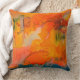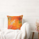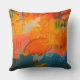 Lancer l'oreiller conçu à l'aide de motifs de la peinture de Marlyn Daggett, Signature. Oranges vives et bleus turquoises. 20 x 20 pouces