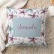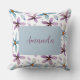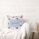 Oreiller à jets floraux bleu et violet personnalisé - Vous achetez un coussin à jets floraux mignon? Ce coussin est installé sur un arrière - plan blanc aux fleurs violettes et bleues. Il a également une plaque rose qui peut être personnalisée avec n'importe quel nom que vous voulez - prénom, nom propre comme MOM, ou message.