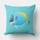 Cet oreiller extérieur est montré dans une couleur aqua avec un joli imprimé de poisson tropical. Customisez cet objet ou achetez tel quel. Image stock