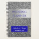 Luxueux, chic, moderne, élégant, livre de planification de mariage argenté et bleu royal scintillant, choix parfait pour une célébration hivernale.