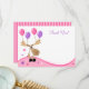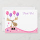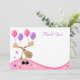 Carte de remerciements plat mignon et d'amusement comportant un orignal de bande dessinée avec les ballons roses et pourpres attachés aux klaxons et entourés par des étoiles. Assortit la même invitation de fête d'anniversaire de filles de style. Pour des demandes ou l'aide faites sur commande avec customiser svp employez le lien de contact de magasin.