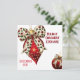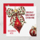 Ornement rouge fantaisie et audacieuse Invitation de la fête d'échange avec un ornement en forme de larme grande avec coquette arc. Customisez à la fois l'avant et l'arrière de cette invitation avec toutes les informations dont vos invités auront besoin.