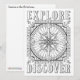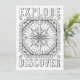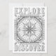 Explorez et découvrez - Un grand rose de boussole marine élaboré occupe le centre de ce design avec une bordure d'ancres. Le texte "Explorer" est au-dessus du rose de boussole et "Découvrir" est en dessous. Colorez cette carte et ajoutez votre message à l'arrière. Cliquez sur personnaliser pour obtenir plus d'options sur le papier et la taille. De OrnaMENTALs™ Feel Good Words Coloring Book. OrnaMENTALs Coloriage Fun pour tous les âges, Design #0119. Oeuvre originale de Sue Chastain, suziqcreations.com.