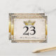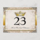 Cartes Numéro de tableau du Mariage Ornate Fairytale. Doté de couleurs pourcentages royales d'or et d'argent et de perles. Cette carte postale de mariage de conte de fées classe et sophistiquée est idéale pour tout mariage à thème ou mariage de cravate noire. En apportant une touche d'élégance et de charme, vous enverrez des salutations à vos invités dans un style absolu avec cette carte postale de mariage de conte de fées vous remercie pour tous vos invités. A des perles et des diamants sur les fleuris qui sont dans les coins. Une couronne royale se trouve en bas à droite, ornée d'or et de bijoux. Une illustration en filigrane se trouve au-dessus d'un arrière - plan vintage et une bordure ornée tient le milieu texturé en papier orné. Les produits correspondants se trouvent dans la section mariage de mon magasin.