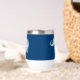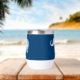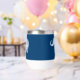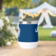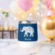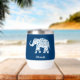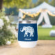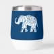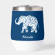 Cute glass with decorative henna tattoo style elephant on dark blue background. Option to customize background color.