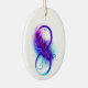 Infinity symbole with a beautiful feather painted in purple and blue bright colors on white background