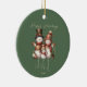 Célébrez la saison avec un joli ornement de Noël à deux côtés qui est parfait pour votre arbre! Sur le devant se trouvent trois gais bonhommes de neige habillés pour l’hiver, entourés de "Joyeux Vacances" en calligraphie élégante, ainsi que les prénoms de la famille et l’année sur un arrière - plan vert sage charmant. Au dos, une photo de famille qui fait chaud au coeur avec tous ceux qui portent des chapeaux de Père Noël, accompagnée de votre nom de famille. L'ornement est personnalisé pour votre famille, ce qui en fait un gardien précieux pour les années à venir.