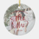 Notre premier Noël en tant que Mme et Mme ornement photo comporte des lettres à la main, la date customisée, et jusqu'à deux photos des jeunes mariés heureux. Cette décoration servirait de cadeau sincère au couple nouvellement marié ou de beau souvenir sur votre arbre.