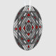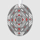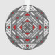 Un mandala carré concentrique prend l'apparence d'un tunnel qui attire le spectateur avec une combinaison de lignes angulaires, de triangles et de cercles dans les tons gris, rouge et blanc pour presque créer une illusion d'optique.