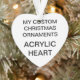 La coutume a imprimé le modèle ACRYLIQUE personnalisé de blanc de DÉCORATION d'ORNEMENT d'ARBRE de NOËL de COEUR - 3" haut x 2,8" au loin x 0,187" profondément. La conception, créent, font vos propres. Votre photo, image, texte, logo, graphiques dans la copie polychrome sur des les deux côté de l'ornement, utilisant le processus d'impression d'AcryliPrint®HD. Fait de l'acrylique ultra-durable.
