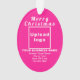 Joyeux Noël! Ornement acrylique avec des textes de voeux Joyeux Noël, votre nom d'entreprise ou d'entreprise, logo, adresse et numéro de téléphone. Les dessins sont des textes blancs sur arrière - plan rose et sur forme ovale. Ornement pour décorer le sapin de Noël dans votre magasin, magasin ou bureau. Ornement pour accueillir visuellement vos clients cette saison de vacances et pour annoncer votre entreprise ou promouvoir votre marque. Customisez-le et utilisez-le pour sensibiliser la marque. Veuillez vérifier l'apparence après avoir téléchargé le logo et tapé des textes. Si l'apparence vous plaît, vous pouvez passer votre commande maintenant. Si vous avez besoin de redimensionner et déplacer le logo et les textes pour s'adapter à cet ornement, s'il vous plaît changer dans l'outil de conception. Vous pouvez également effectuer d'autres modifications selon vos préférences dans l'outil de conception, comme changer la couleur de l'ornement, la couleur de police et le style de police. Joyeux Noël! Je vous souhaite plus de ventes cette saison des Fêtes.