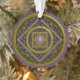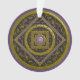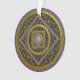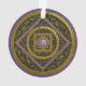 Ce mandala sur le thème du Sagittaire représente une pierre améthyste entourée du symbole du signe, de la constellation et du symbole alchimique du Feu parmi les fibres et les tissages.