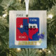 Cet ornement présente les contours de l'état du Texas et les couleurs du drapeau, les couleurs de l'Aubrey et les bleus.