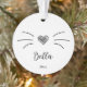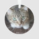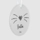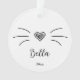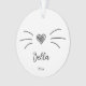 Ornement personnalisé blanc et noir avec photo de chat. Un côté comporte des moustaches de chat mignon et le nom du chat en écriture. Le verso comporte votre photo préférée de votre chat.